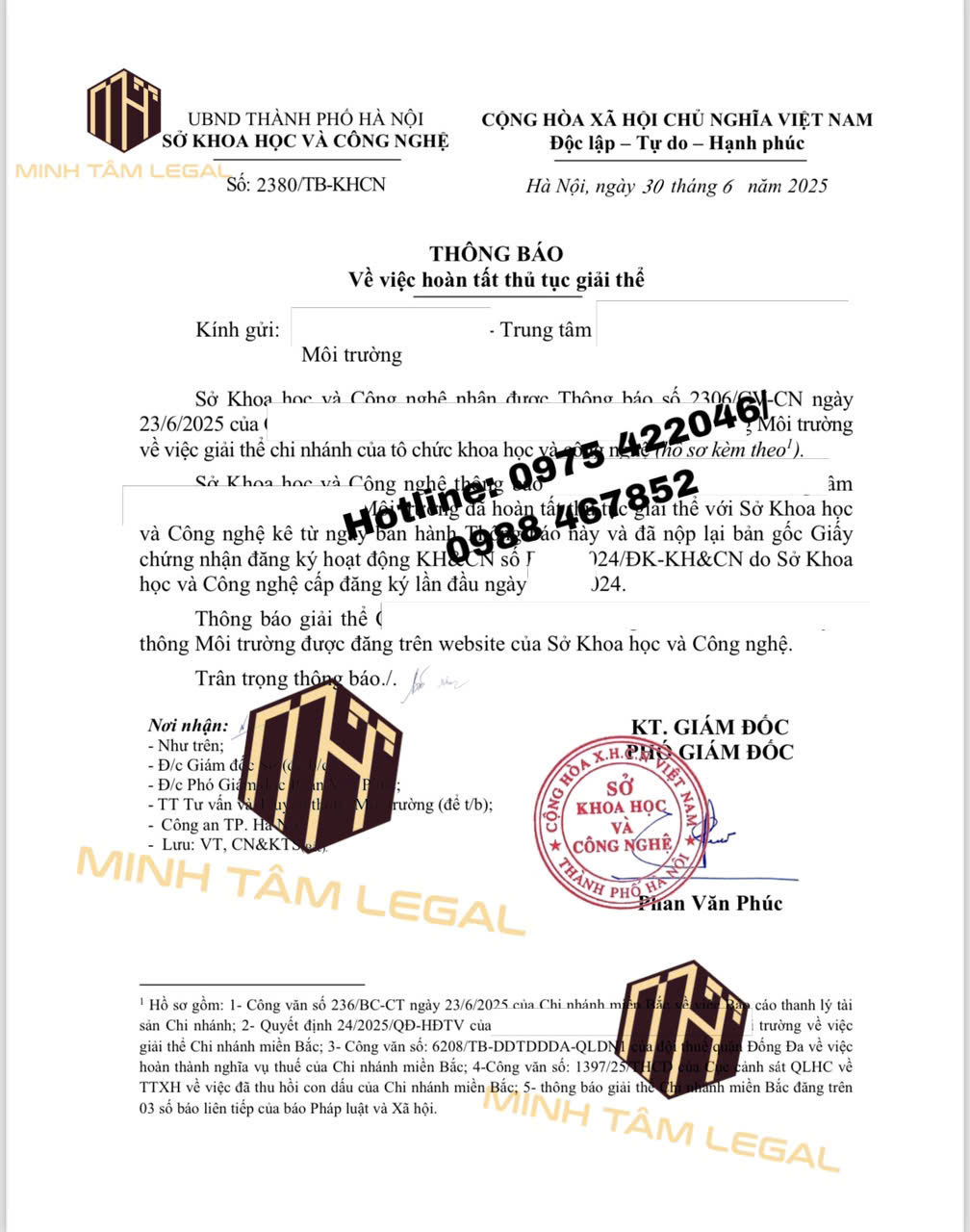 3.3. Bước 3: Gửi thông báo về việc giải thể viện nghiên cứu cho cơ quan đăng ký hoạt động KHCN và các bên liên quan